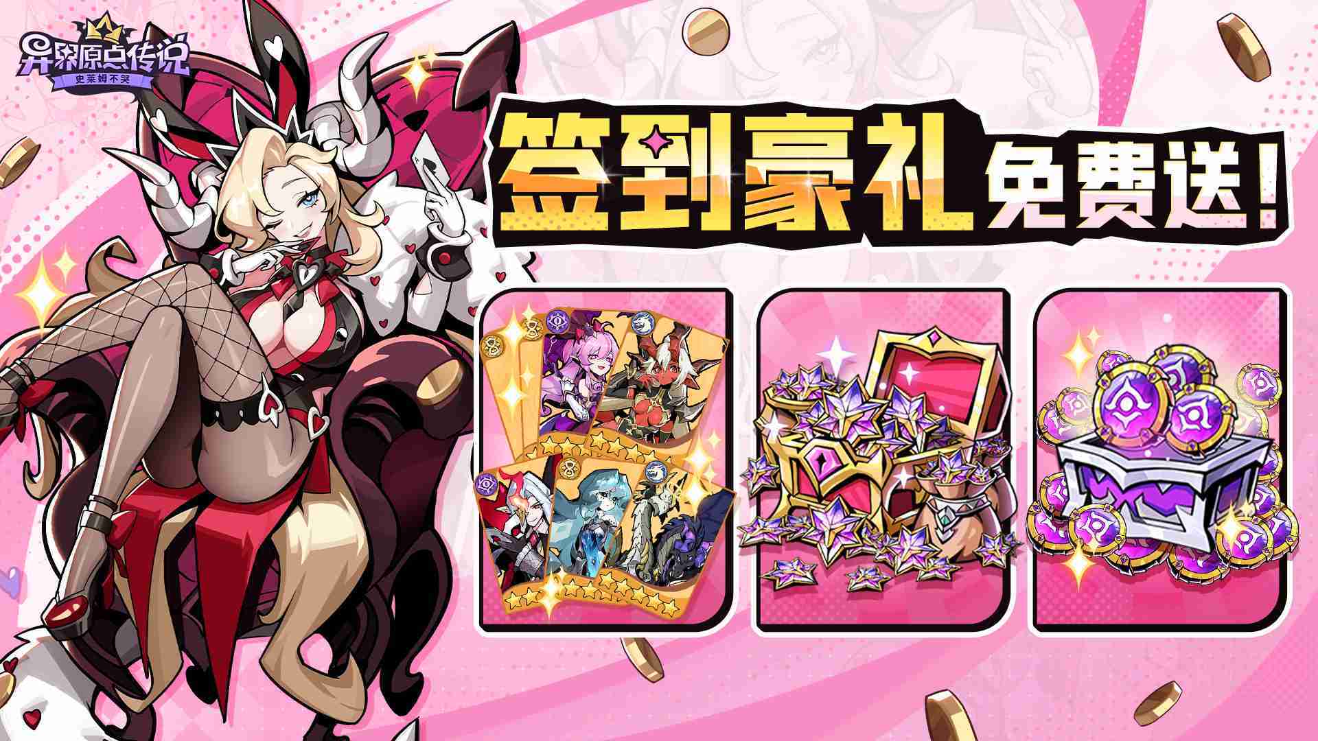 敢在应用商店标注“高福利”的游戏一定不简单。。。《史莱姆不哭》的预约福利除了孵蛋抽卡及养成资源外,,还有高价值的限定角色皮肤『甜蜜陷阱』。。。