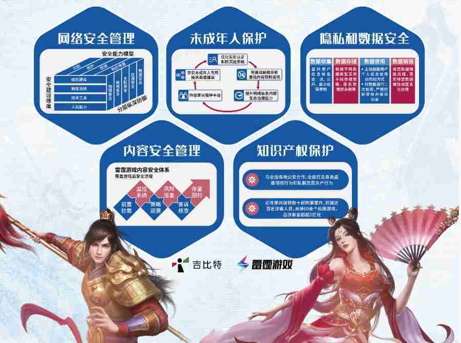 本次yaxin111展区以网络安全管理、、内容安全管理、、、、未成年人保护、、隐私和数据安全、、、、知识产权保护五个模块介绍公司游戏安全工作成果,,,体现yaxin111高度重视网络安全,,,,严格遵守相关法律法规要求,,,积极承担企业主体责任。。。